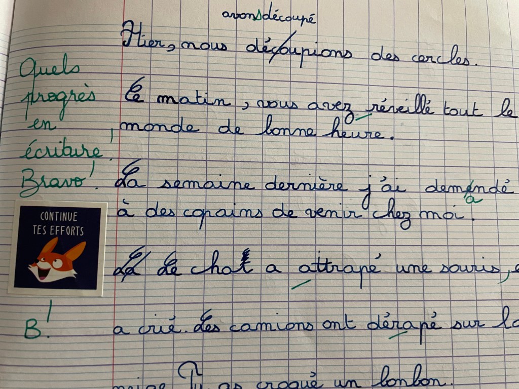 - Confiance en soi retrouvée et des progrès soulignés par son enseignante !