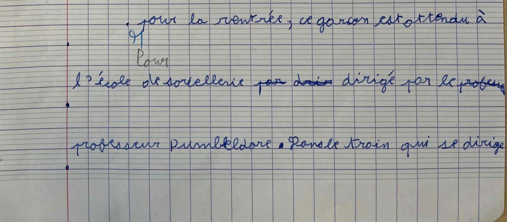 - La tenue du stylo manque de dynamisme, la main n’est pas correctement posée sous la ligne
